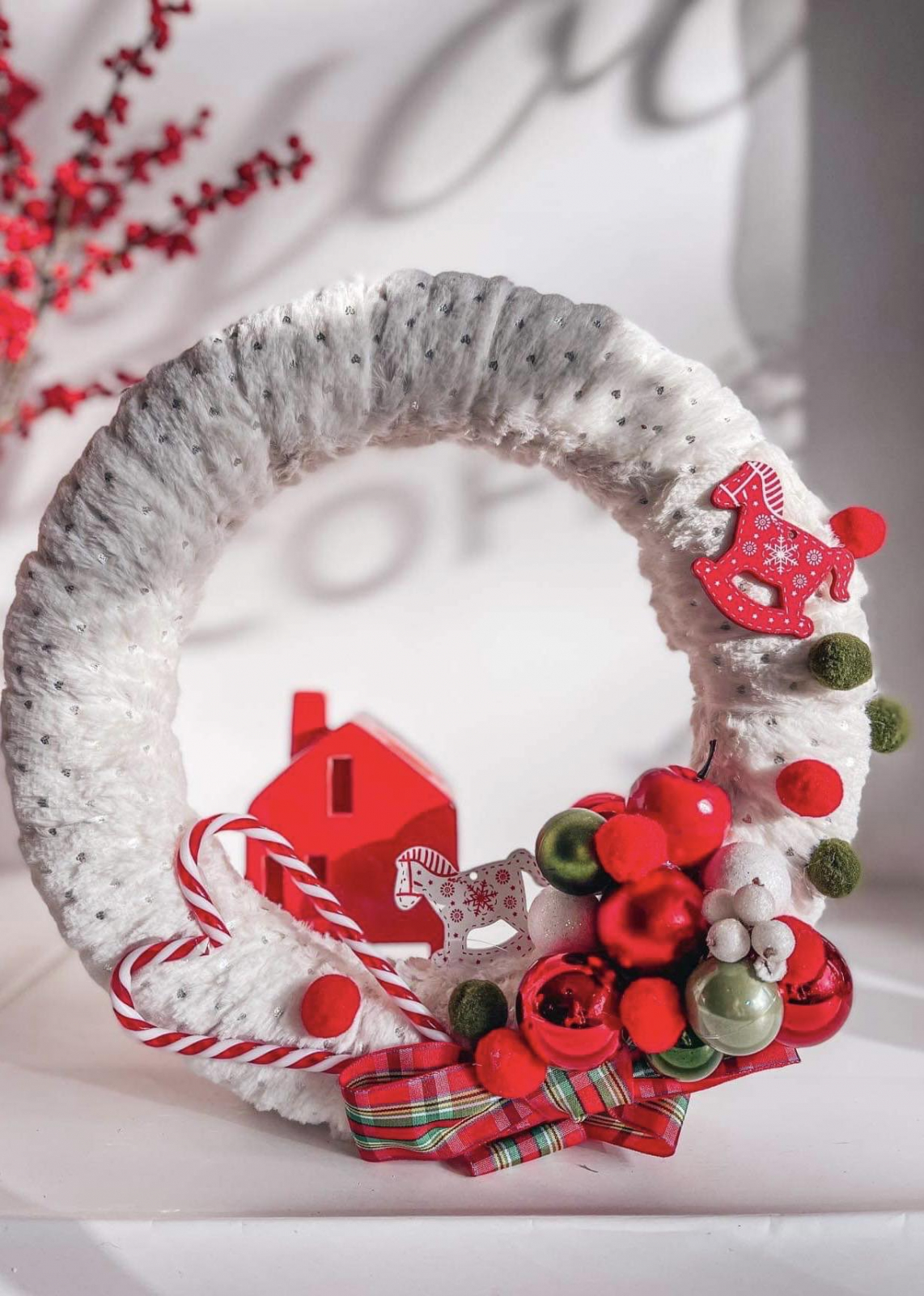 Coronița "Feerie de Crăciun" este alegerea ideală pentru a înfrumuseța ușa de la intrare, peretele sau masa festivă, sau poate fi cadoul perfect ce va aduce bucurie prietenilor tai si va crea o atmosferă de poveste în jurul sărbătorilor de Crăciun.