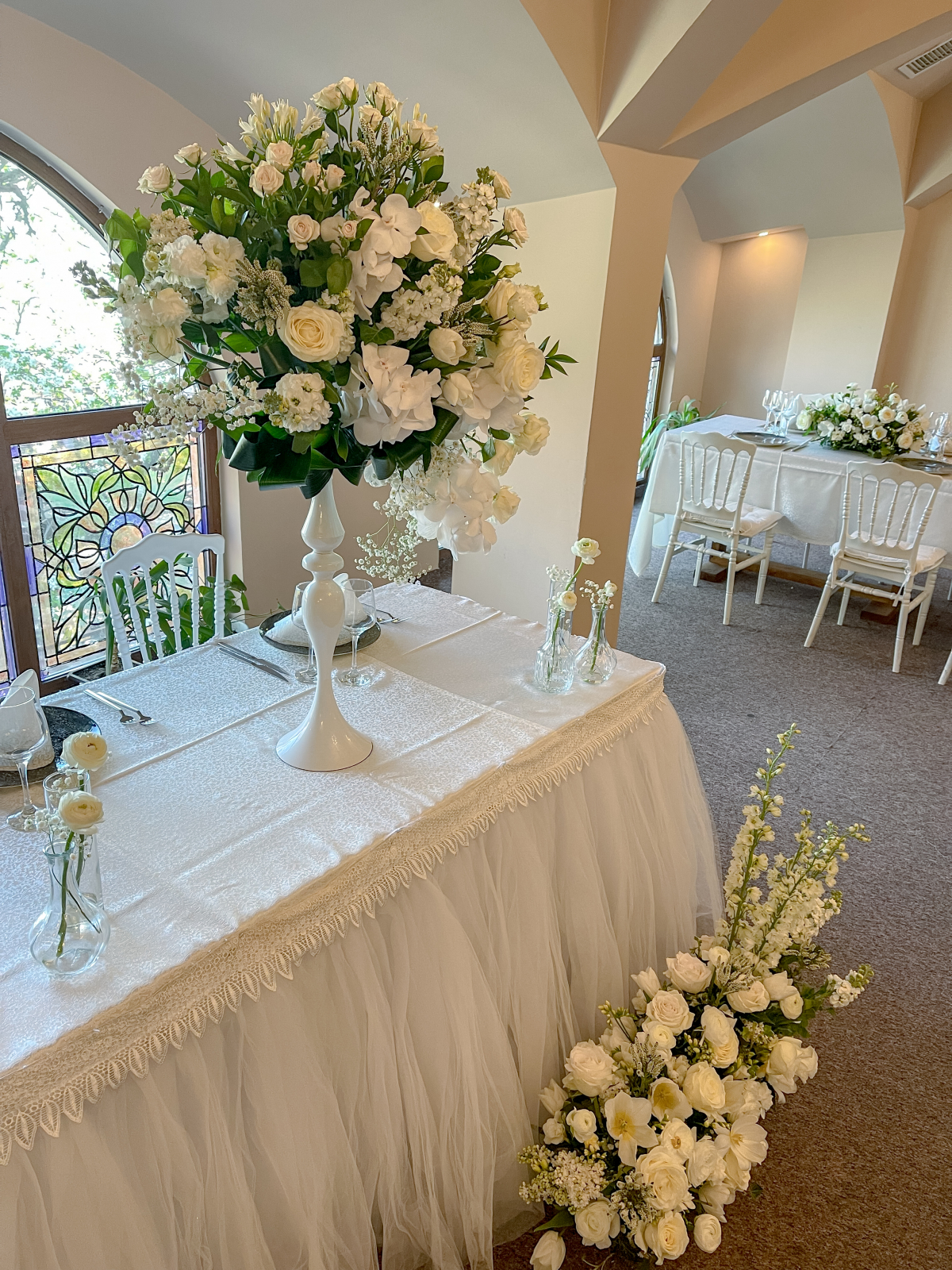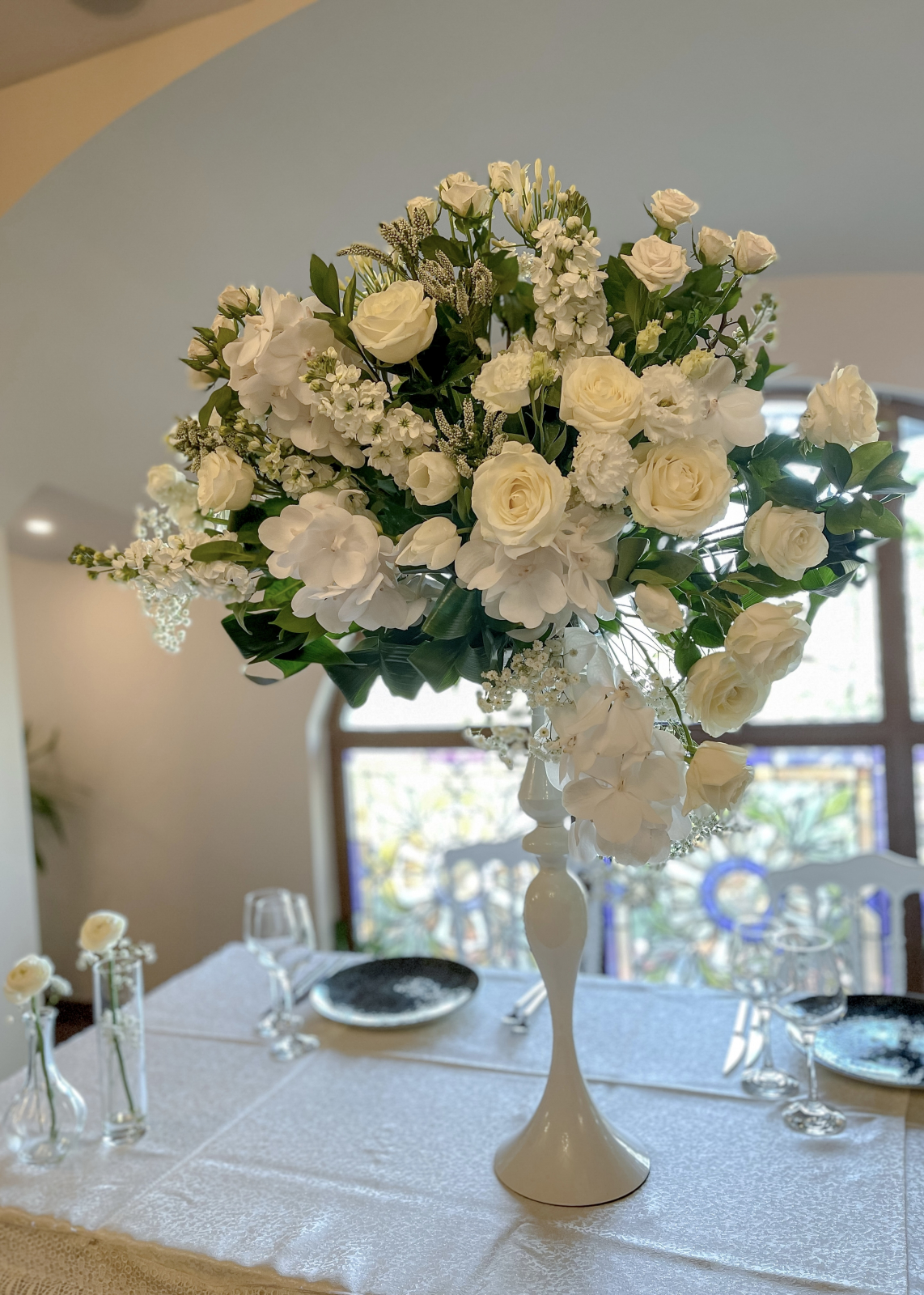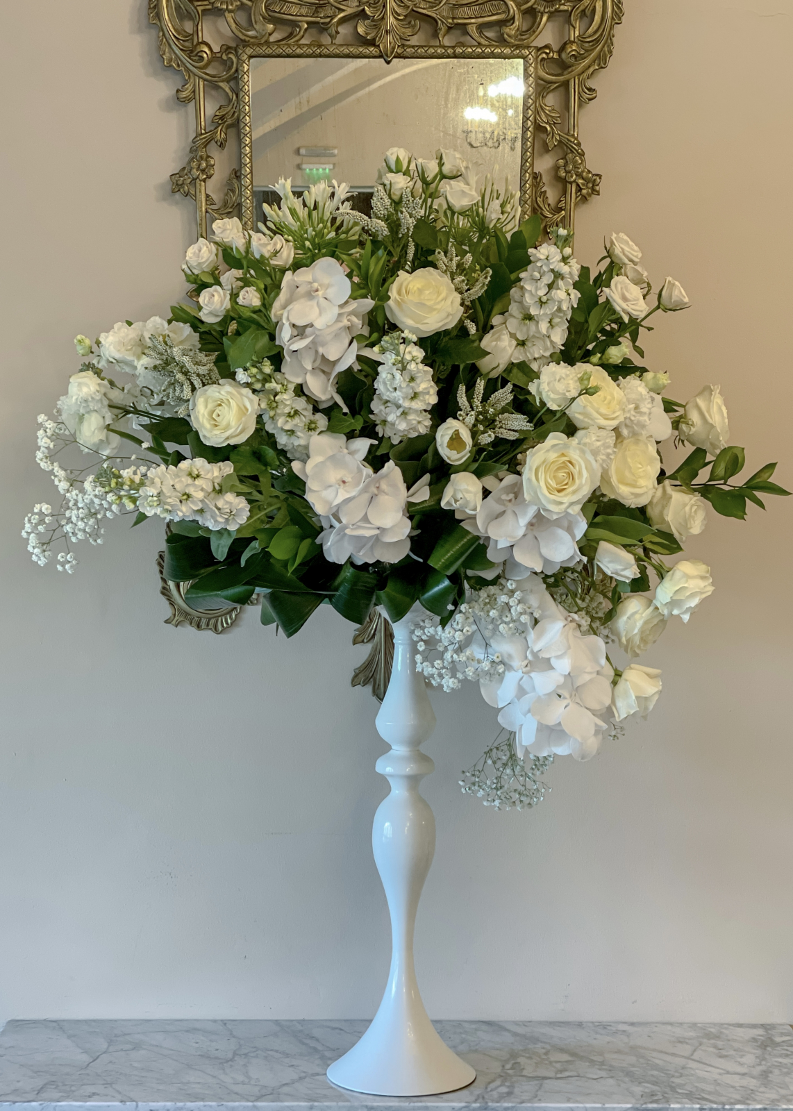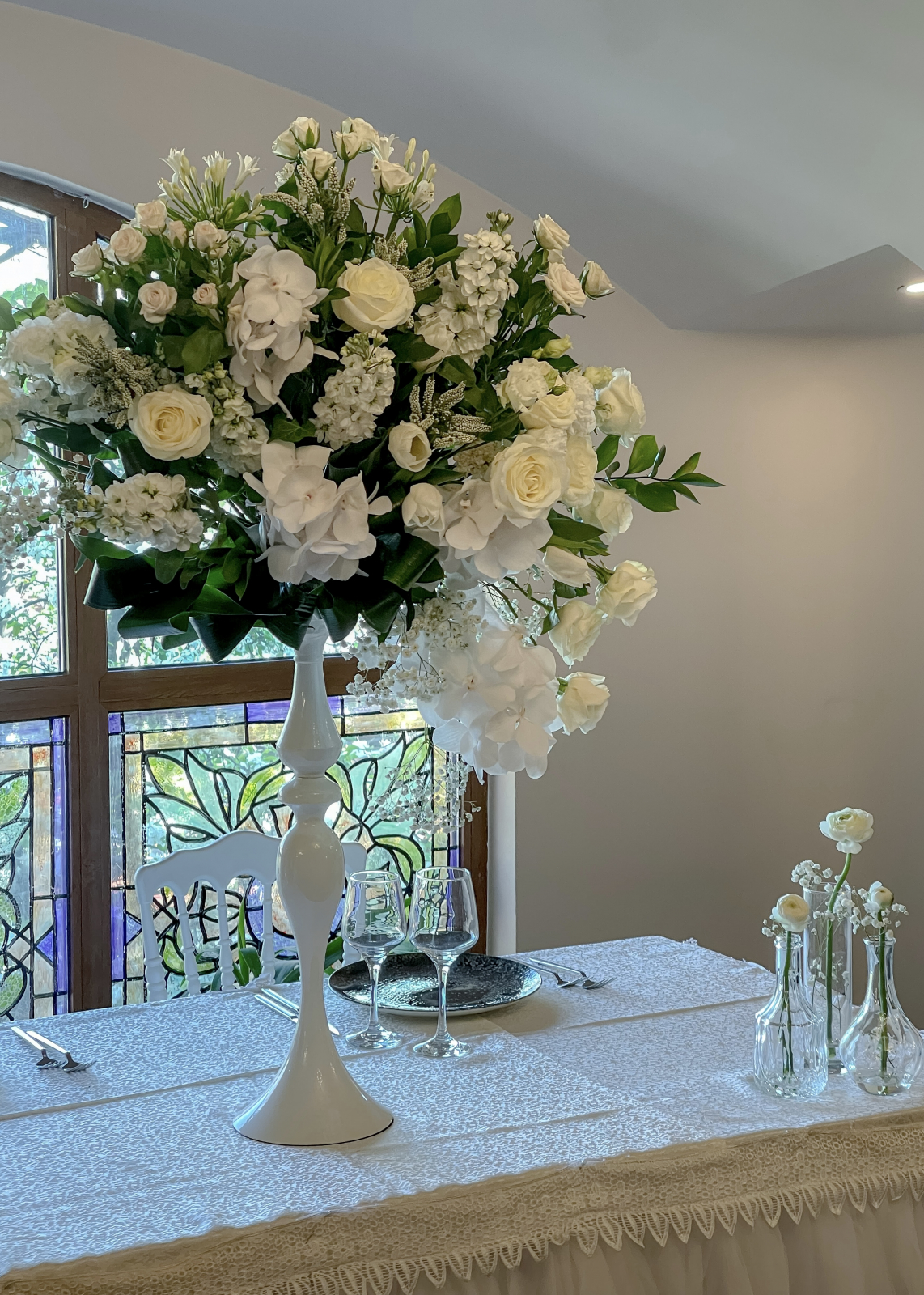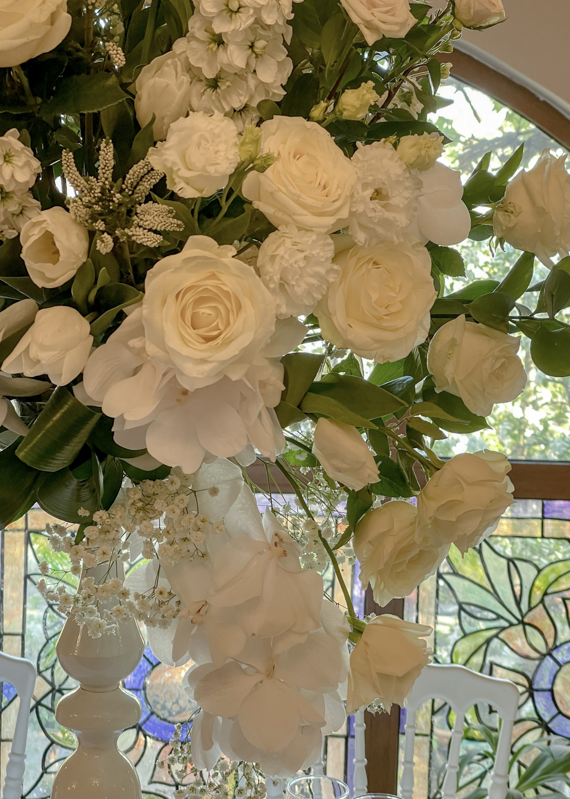 Flori: Gypsophila, Vanda, Matthiola, Lisianthus, Lalele, Trandafiri