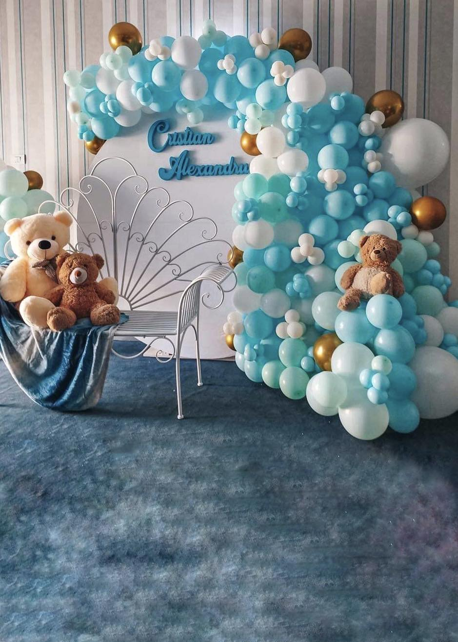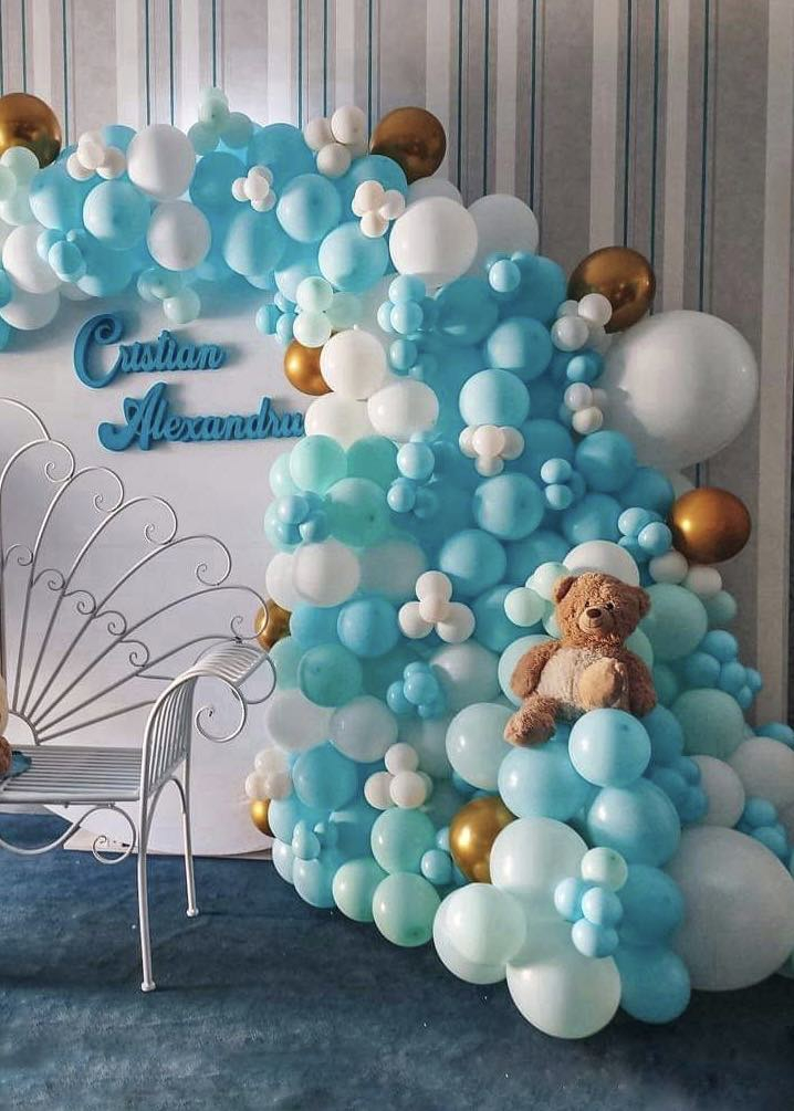 Baloanele albastru turcoaz, cu nuanțele lor luminoase și pline de viață, adaugă o notă de prospetime și veselie, reprezentând începutul unei noi etape în viața pruncului botezat.