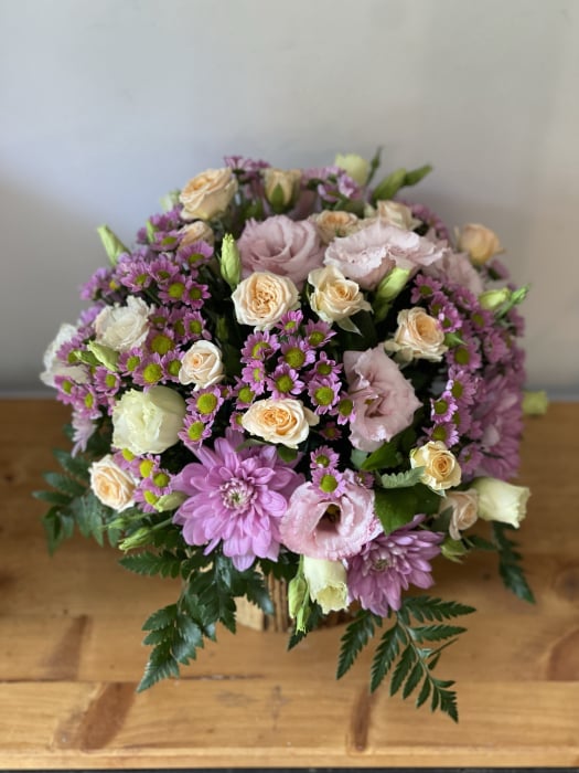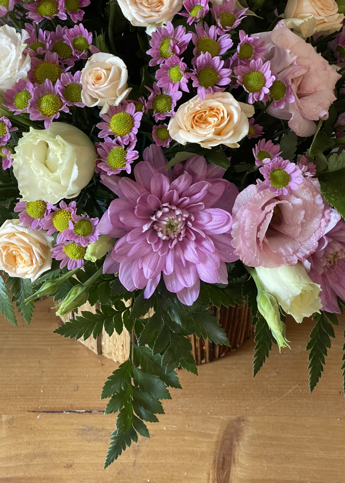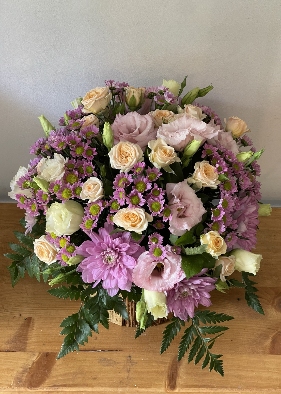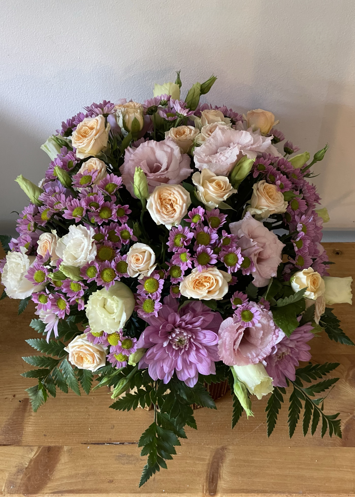 Presara Ultimul Drum cu cat mai multe flori, in semn de omagiu si pretuire. Aranjamentul funerar poate fi facut pe rotund sau pe lung, in orice paleta cromatica doriti.