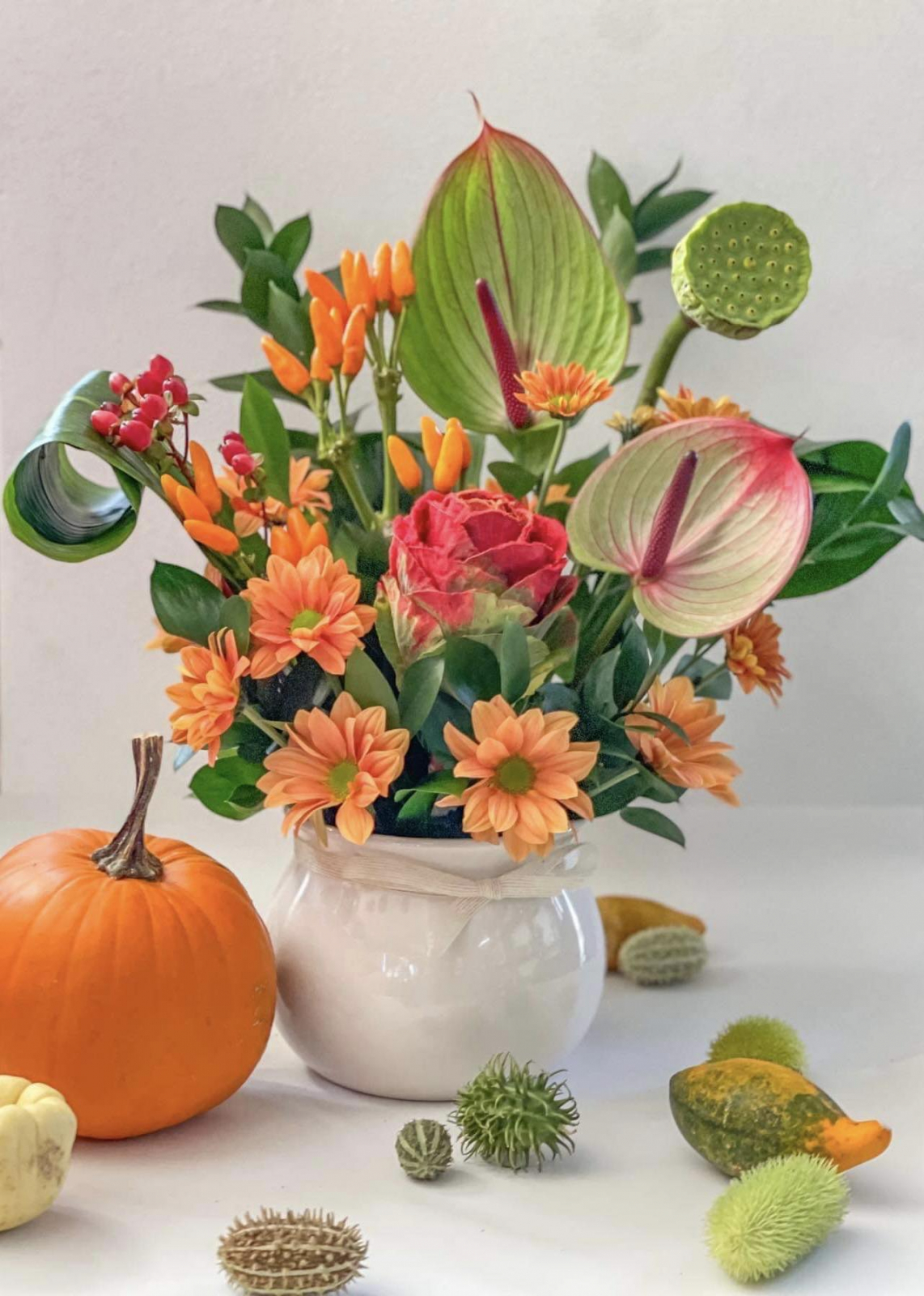 Flori: Hypericum, Anthurium, Crizanteme